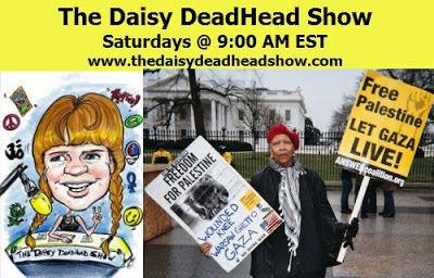 Tomorrow we will be re-interviewing Efia Nwangaza, Greenville Occupier, radical lawyer and tireless activist (our March interview with Efia is here), about her recent trip to Switzerland to lobby the UN Human Rights Committee on behalf of US political prisoners, including the Angola 3. (Efia was also on the Daisy Deadhead show last year, see graphic below!) We will be taking phone calls and questions.